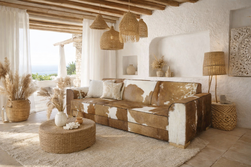 - Cowhide Sofa Betsy, 3.5 seater , in brown cowhide leather