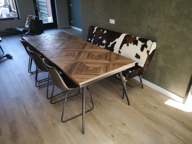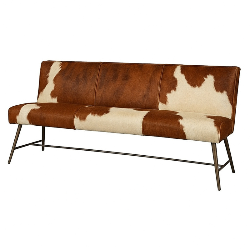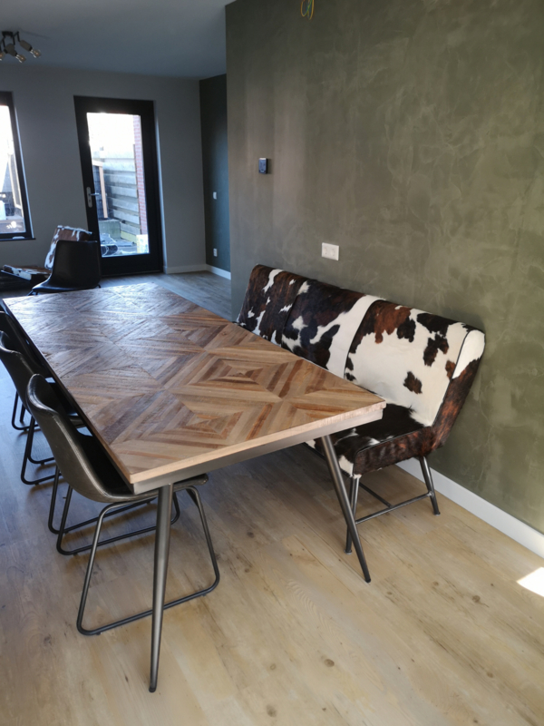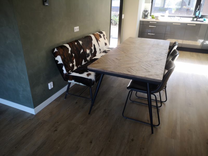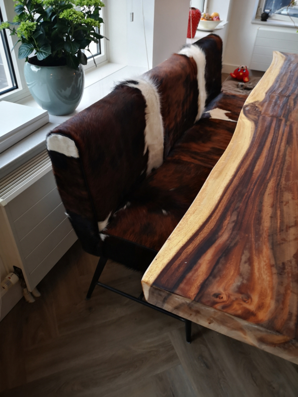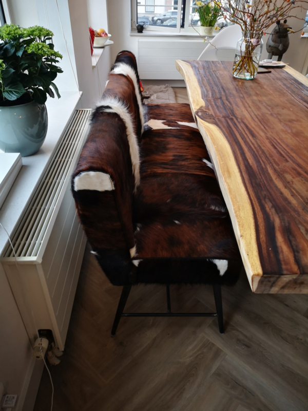 Belmonte eetbank 185cm, in diverse soorten koeienhuid