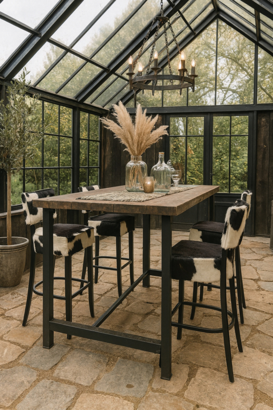 OverzichtDe barkruk is leverbaar in diverse soorten koeienhuid. Het frame is gemaakt van beukenhout en kan op iedere gewenste hoogte geleverd worden. Zo past de barkruk altijd optimaal bij u keuken, bar of tafel.
